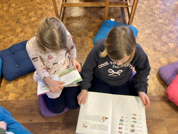 „Das Schul-ABC“ ist der Titel des Buchgeschenks für die Lesestarter. Der Autor Paul Maar hat viele fröhliche, kurze Verse rund ums ABC mit offenem Ende verfasst. Kleine Leser:innen werden ermuntert, die Verse mit einem passenden Reimwort selber zu beenden. Im Klassenverband wurden erste Verse gelesen und die Kinder hatten sichtlich Freude am Aufspüren der Reimwörter.