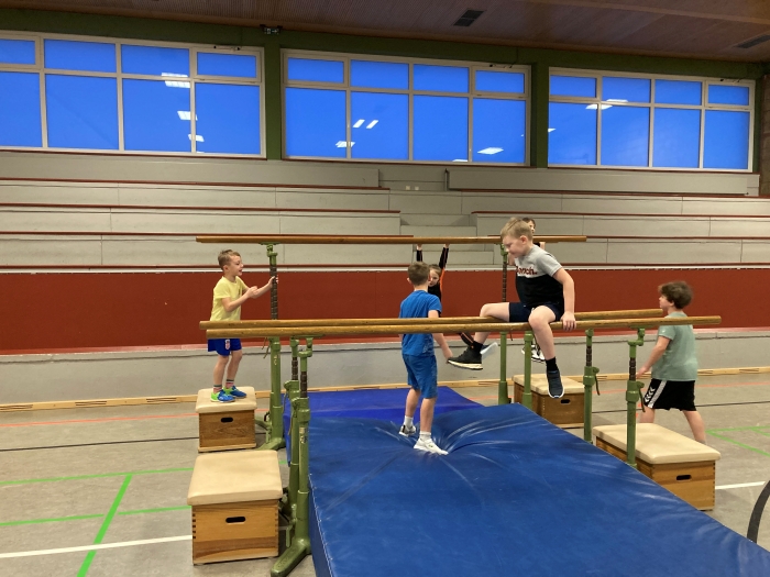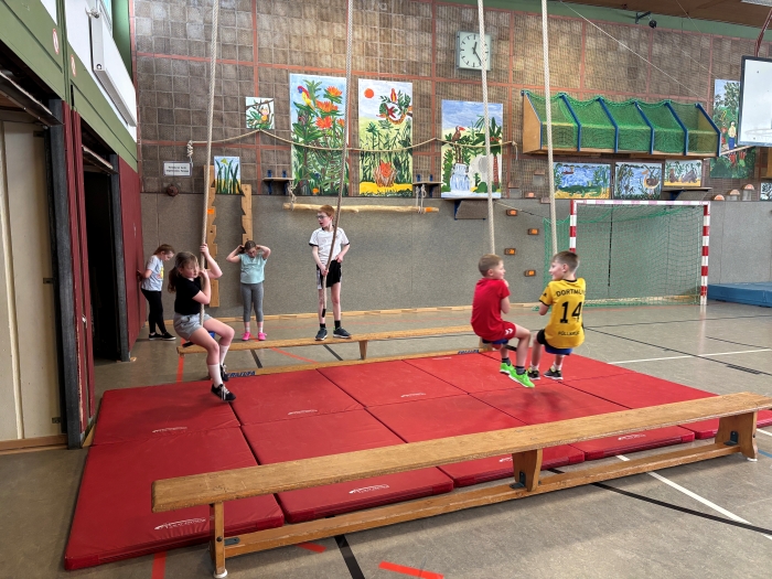 Am 26.01. und 27.01. wurde das alljährliche Turnfest gefeiert. Am Ende der Sporteinheiten zum Thema Turnen konnten die SchülerInnen zeigen, welche Fähigkeiten sie in den letzten Wochen erworben haben. Im Rahmen eines Stationslaufes turnten die Kinder im Bereich des Bodenturnens Rolle, Handstand und Rad. An den Geräten konnten die SchülerInnen balancieren, hangeln und stützen. Der Sprung auf und über den Kasten stellte eine besondere Herausforderung dar. Viel Freude bereitete das Schaukeln an den Seilen und Ringen. Das Fest stellte eine sportliche Abwechslung für alle Mitglieder der Schulgemeinschaft dar.